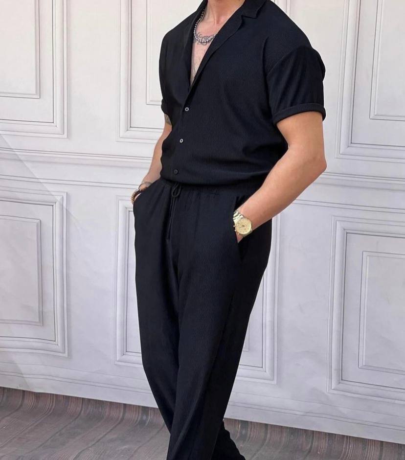 ست پیرهن شلوارک مردانه مدل یقه انگلیسی جنس مراکشی