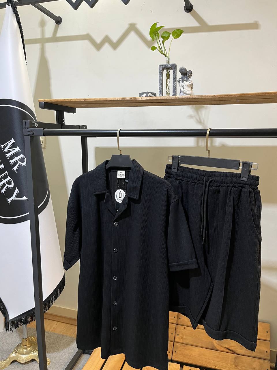 ست پیرهن شلوارک مردانه مدل یقه گرد جنس مراکشی